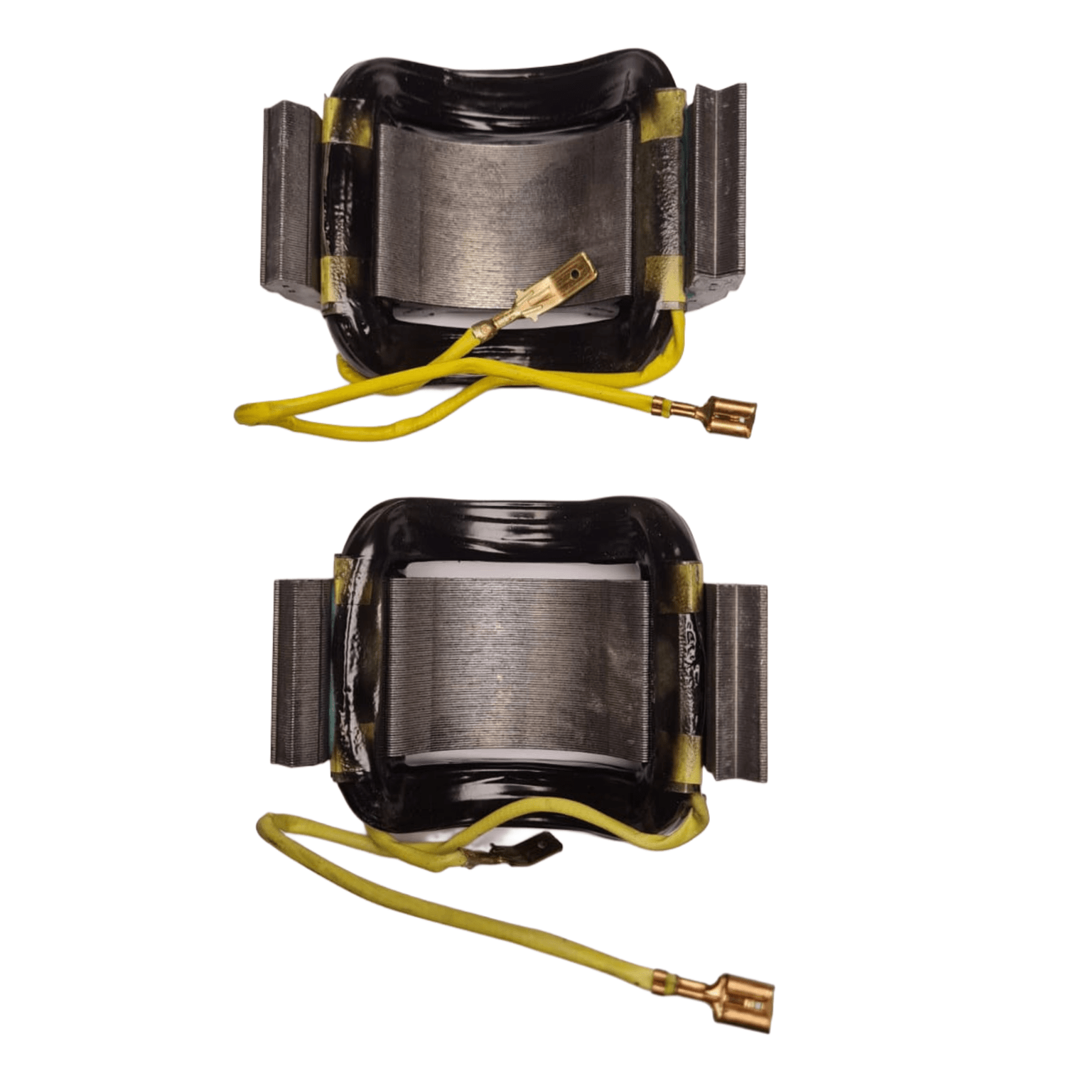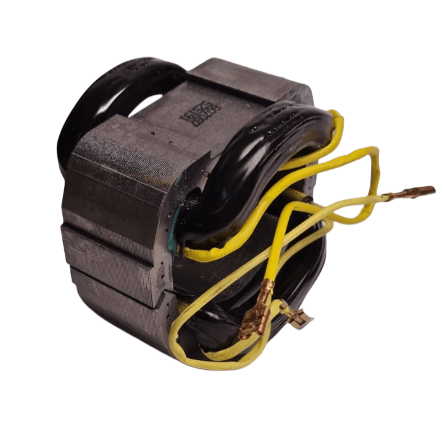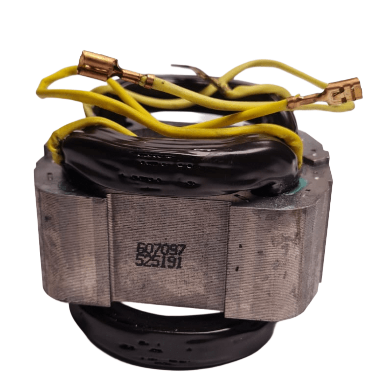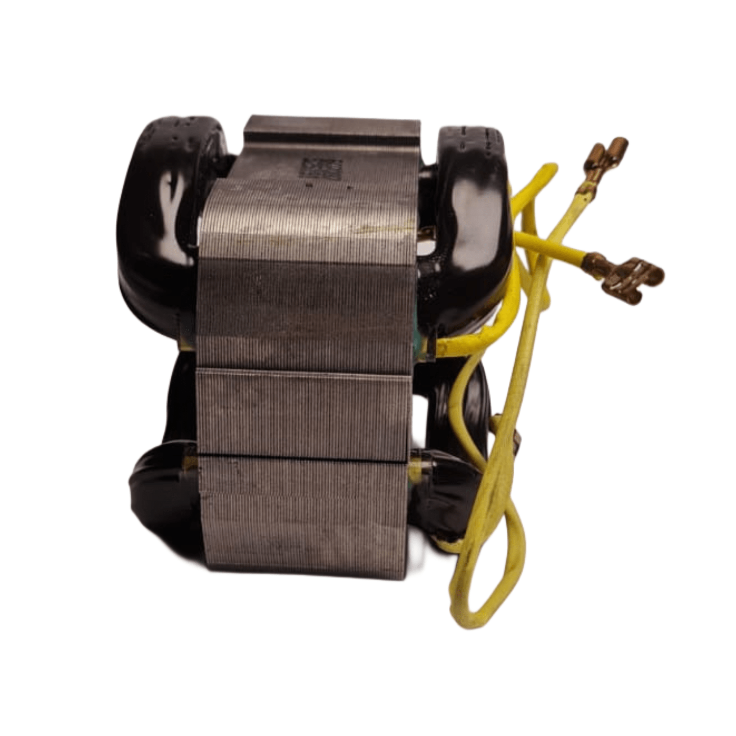 Também conhecido como bobina de campo e sapata polar, o estator é usado em conjunto com o induzido e as escovas de carvão.