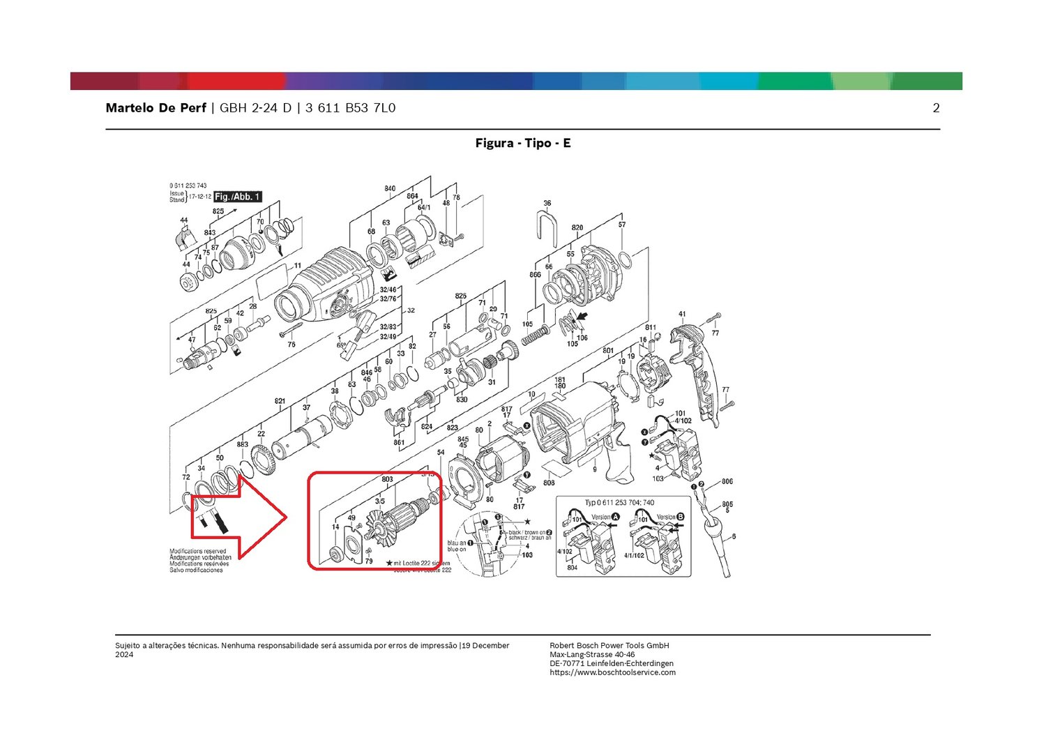 Induzido 220v Martelo Rompedor GBH 2-24d Bosch F000605184