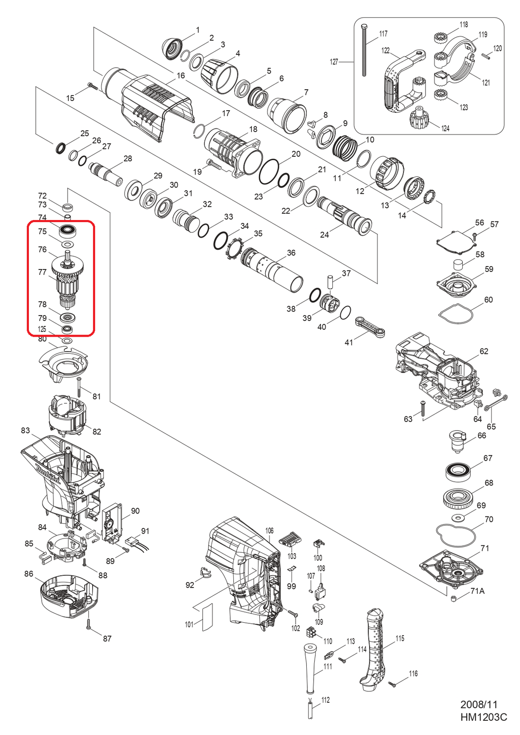 Induzido 220v Martelo Rompedor HM1203C / HM1213C Makita 510310-2