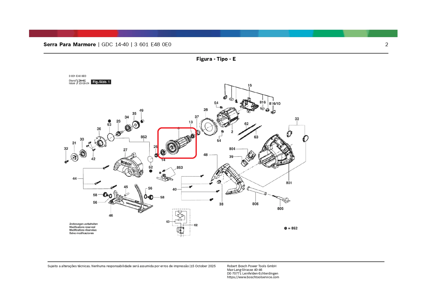 Induzido para Serra Mármore Bosch 1548 / 1E48 / GDC 14-40 - 110v