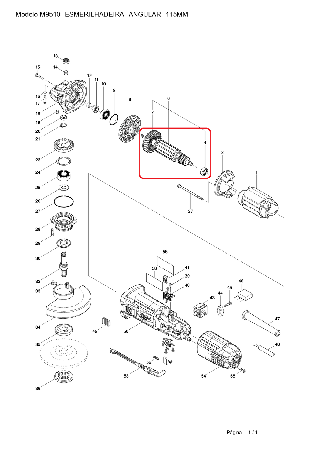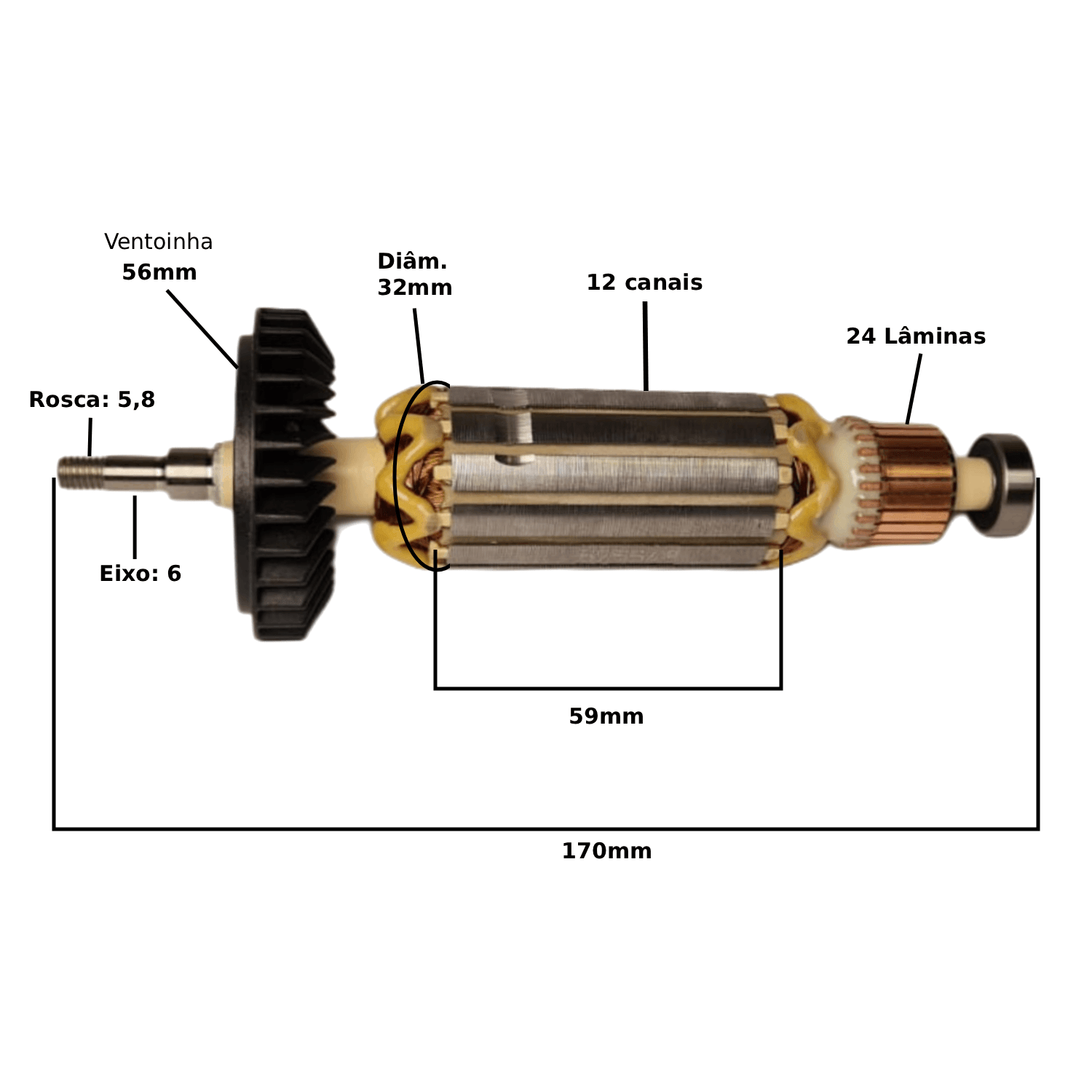 Induzido Rotor 220v Esmerilhadeira M9510 / M9511 Makita 515548-4